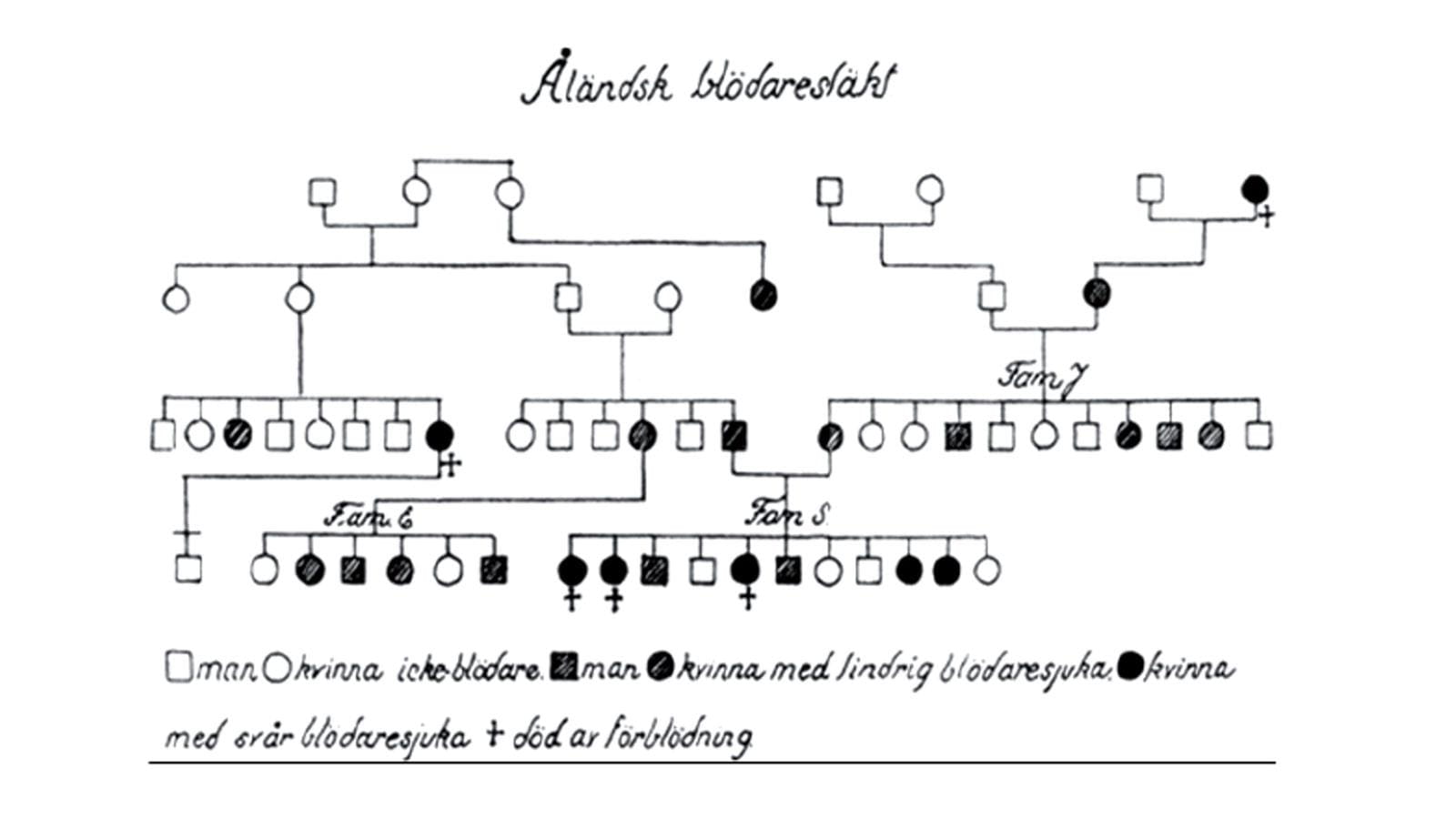 Erik von Willebrand kaldte selv tilstanden for ”hereditær pseudohæmofili” eller ”konstitutionel trombopati”. I artiklen fra 1926 indgik en stamtavle med 57 personer fra to beslægtede familier over fire generationer. Af de elleve børn i familien S var der kun fire, der ikke havde blødningssymptomer. I følge arvelighedsanalysen, som blev fremlagt i artiklen, drejede det sig om dominant arvegang, som du kan læse mere om her.